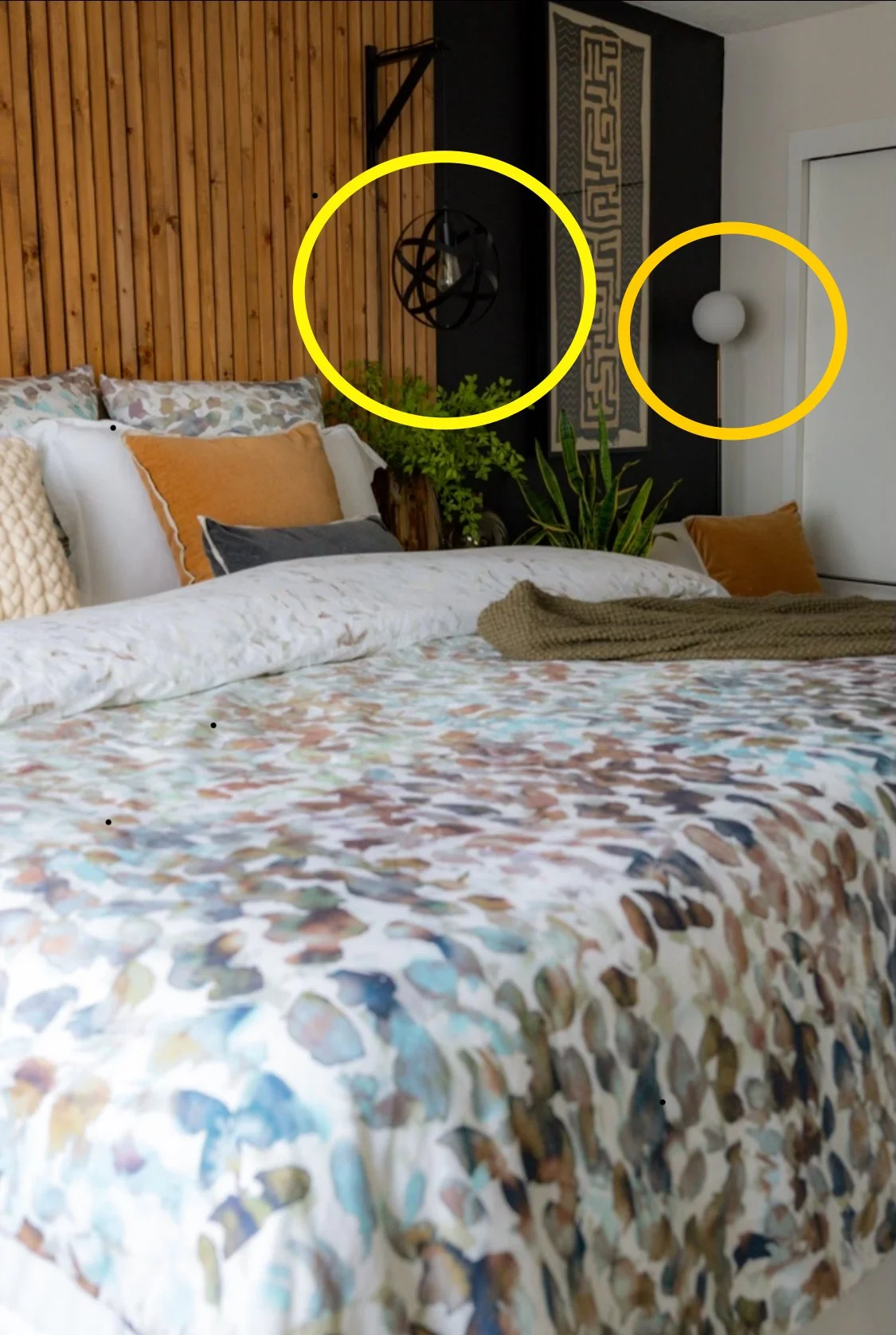 Lighting is the secret sauce of a bedroom transformation. I have three different sources of light in the bedroom. During the day, the overhead light comes in handy, while most nights, the lamp next to the reading chair illuminates the space. I've also opted for hanging pendants over each nightstand, providing more surface area, but you can choose to add traditional lamps if you prefer.